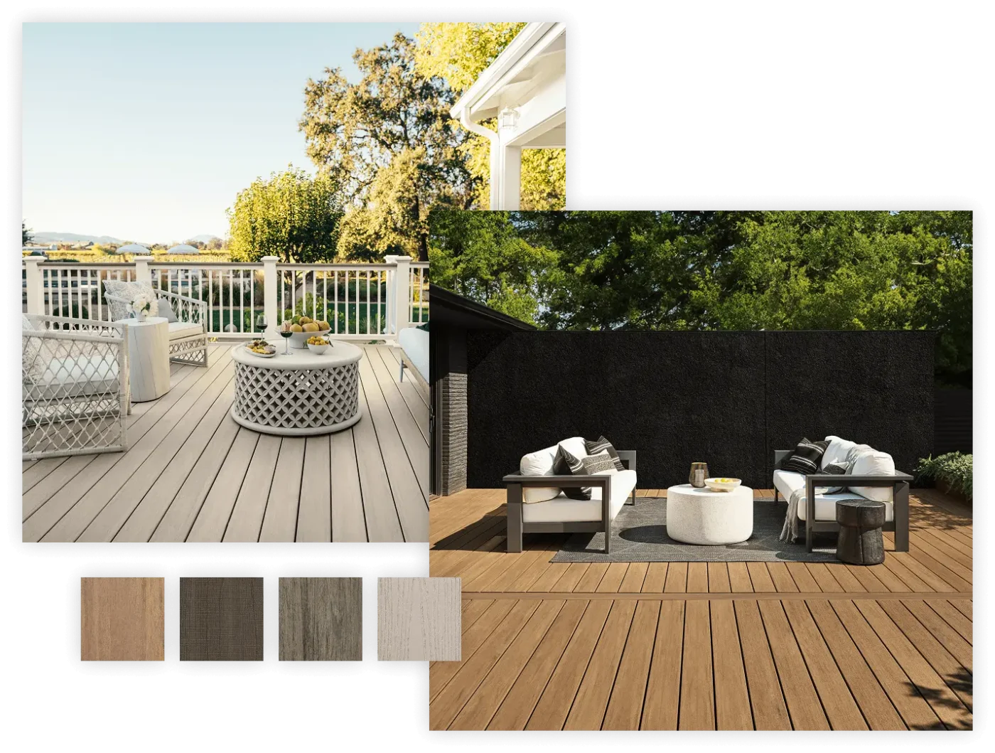 • Composite Decking Collections that combine realistic wood-grain aesthetics with durable capped construction